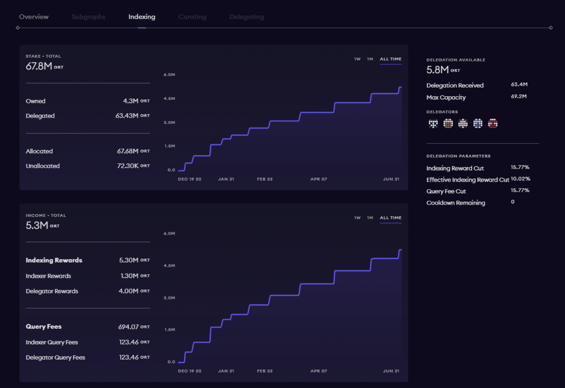 - Indexer Rewards (in GRT): Total rewards earned.