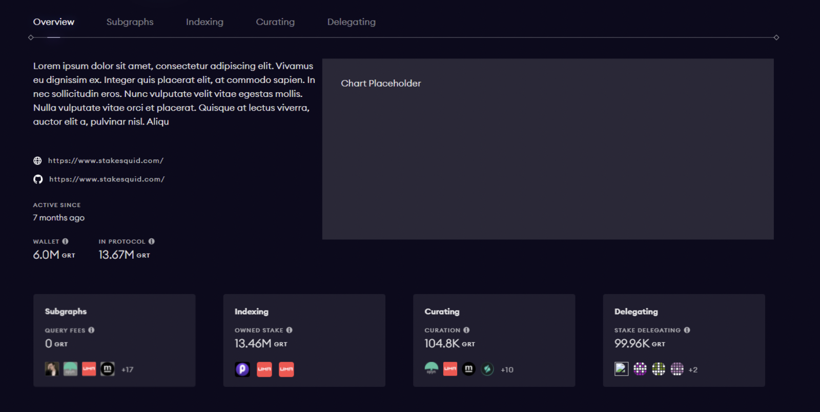 - Owned: This is the Indexer’s deposited stake, which may be slashed for malicious or incorrect behavior.