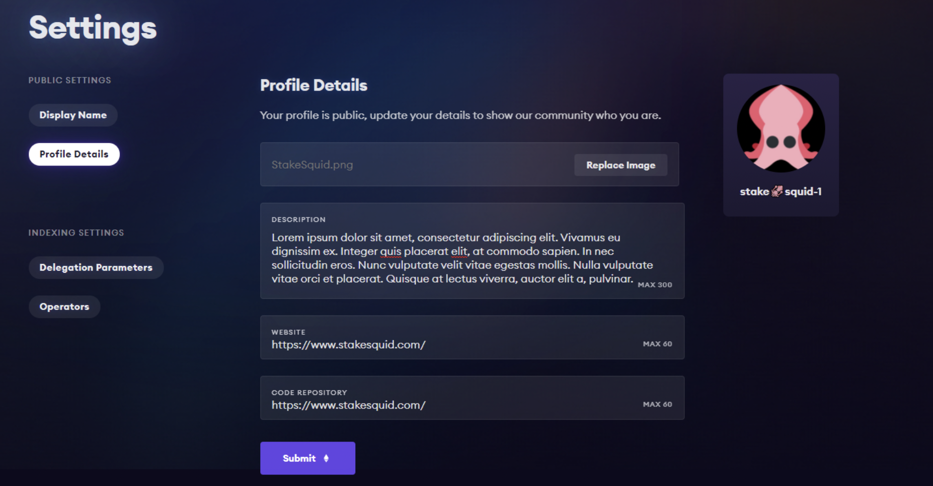 Within your user profile, you’ll be able to manage your personal profile details (like setting up an ENS name). If you’re an Indexer, you have even more access to settings at your fingertips. In your user profile, you’ll be able to set up your delegation parameters and operators.