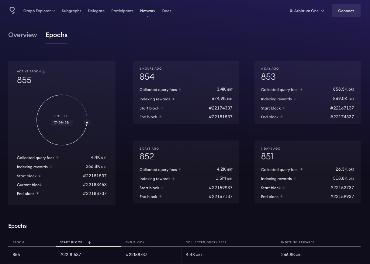 - Epoch status, which refers to the query fee collection and distribution and can have different states: