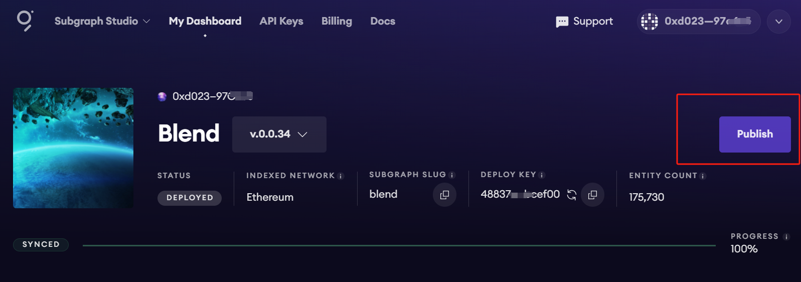 • It removes rate limits and makes your Subgraph publicly searchable and queryable in Graph Explorer.